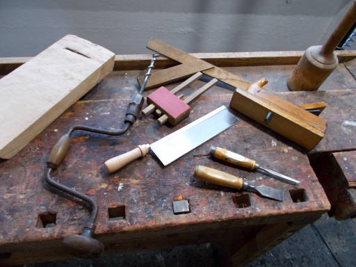 UŻYWANE NARZĘDZIA – pełen zakres tradycyjnych narzędzi stolarskich: piły, strugi, wiertła, dłuta.