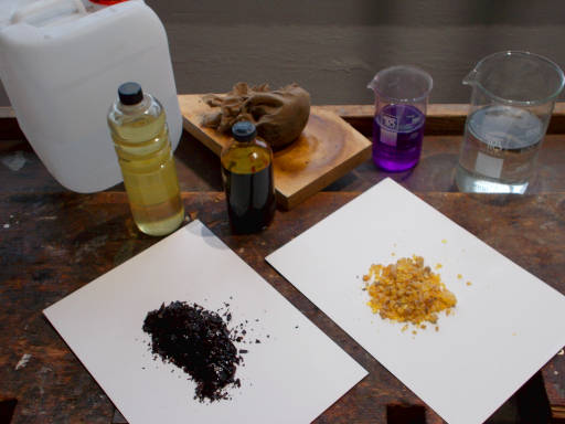 UŻYWANE NARZĘDZIA – zestaw do politury szelakowej.